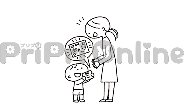 保護者に手紙を見せる母の日の子どものイラスト(白黒)