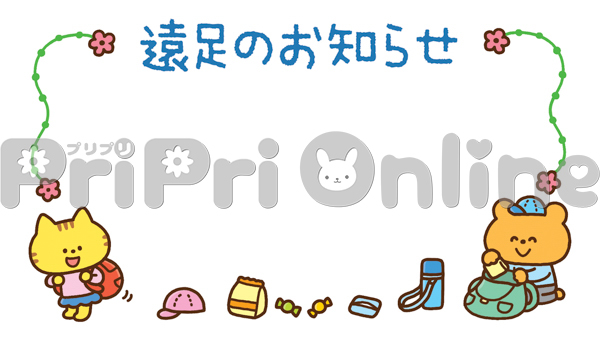 荷造りする動物たちと「遠足のお知らせ」の飾り枠