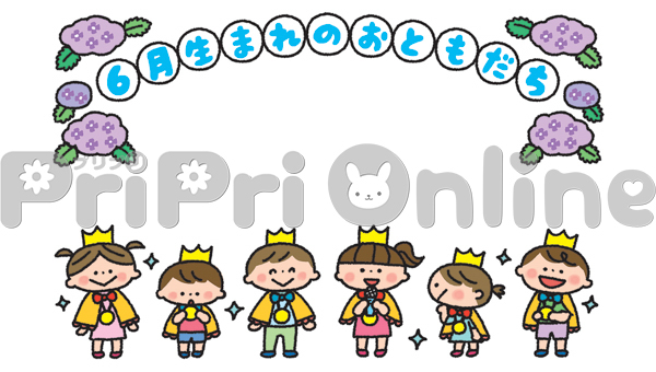 お誕生月の子どもたちと「6月生まれのおともだち」の飾り枠