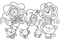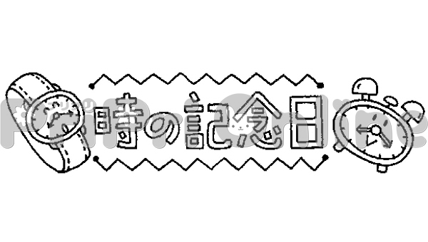 時計と「時の記念日」の飾り文字(白黒)