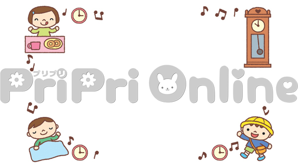 大きな柱時計と生活する子どもたちの飾り枠