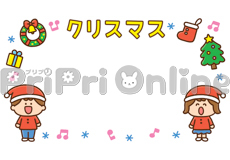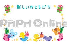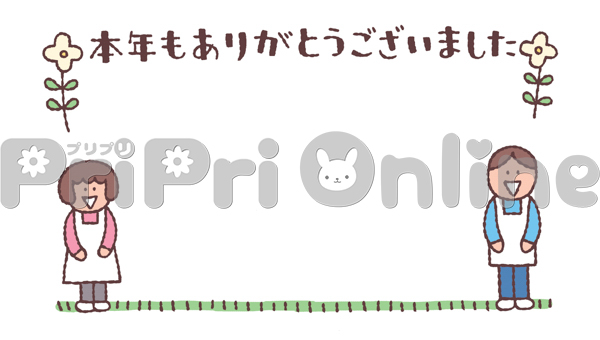 挨拶する保育者と「本年もありがとうございました」の飾り枠