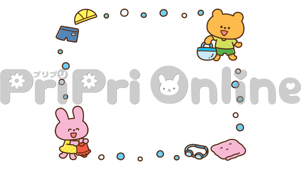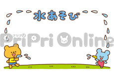 プールの準備をする動物たちの飾り枠