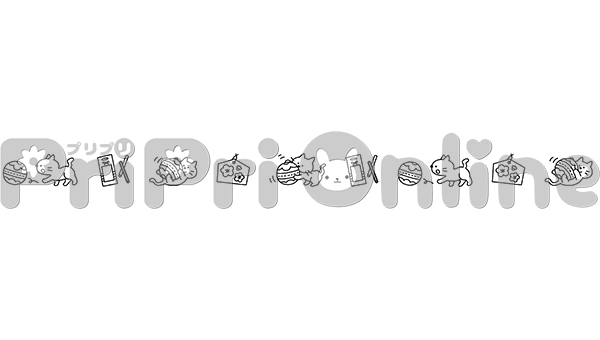 てまりで遊ぶ猫や絵馬、千歳飴の飾り罫(白黒)