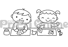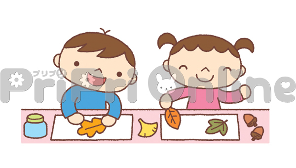 落ち葉とどんぐりの製作をする子どもたちのイラスト