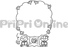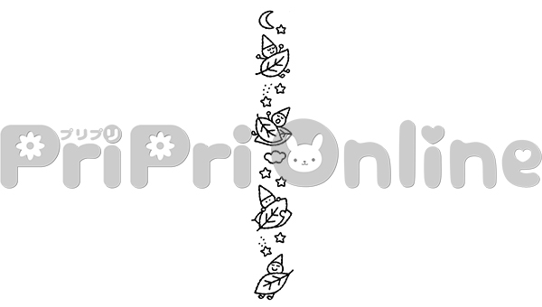 葉っぱの布団で眠る妖精たちの飾り罫(白黒)