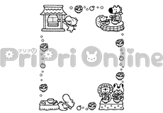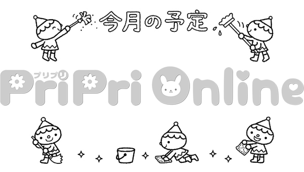 掃除するこびとと「今月の予定」の飾り枠(白黒)