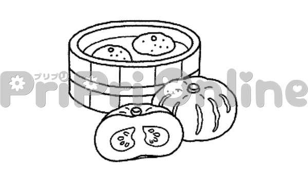 冬至のゆずとかぼちゃのイラスト(白黒)