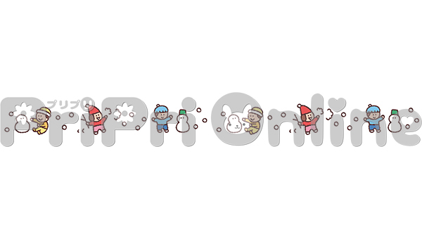 雪だるまで遊ぶ子どもたちの飾り罫