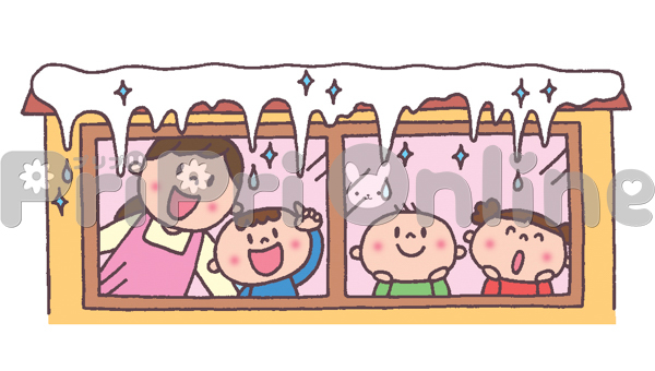 つららを眺める子どもたちと保育者のイラスト