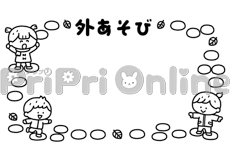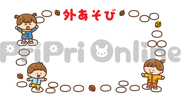 ケンケンパをする子どもたちと冬の「外あそび」の飾り枠
