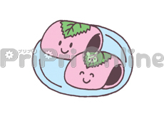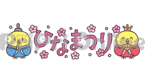 おだいりさまとおひなさま姿の鳥と「ひなまつり」の飾り文字