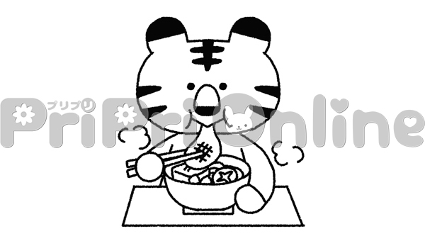 お雑煮を食べる虎のイラスト(白黒)
