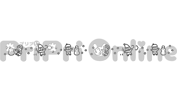 雪だるまで遊ぶ子どもたちの飾り罫(白黒)