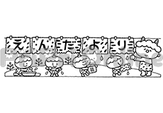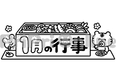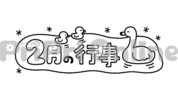 アヒルの親子と「2月の行事」の飾り文字(白黒)