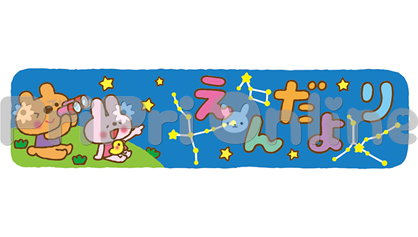 夏の星座を観察する動物たちと「えんだより」の飾り文字