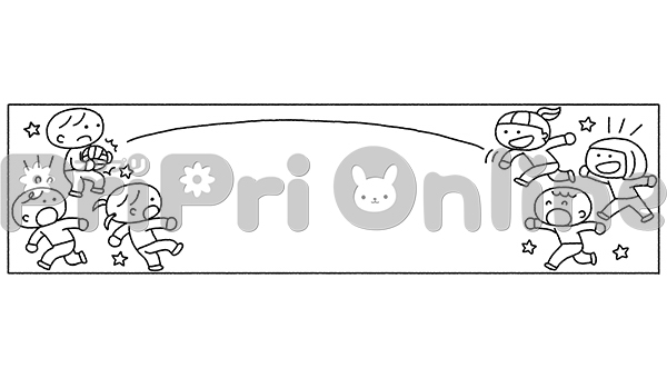 ドッチボールをする子どもたちの飾り枠(白黒)