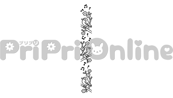 梅の花とうぐいすの飾り罫(白黒)
