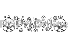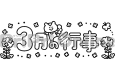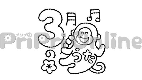 団子を食べるサルと「3月のうた」の飾り文字(白黒)
