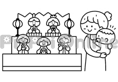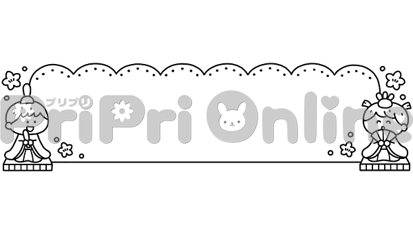 おだいりさまとおひなさま姿の子どもたちの飾り枠(白黒)