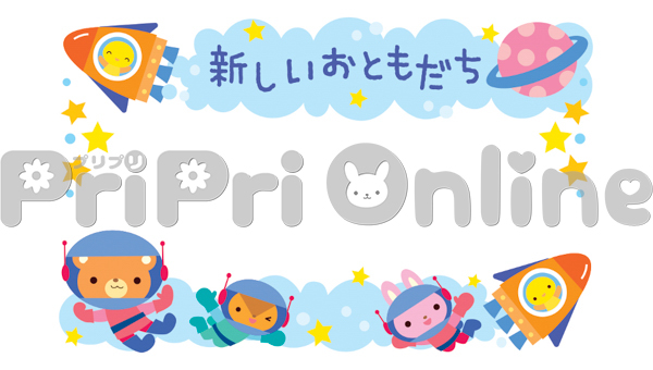 宇宙飛行をする動物たちと「新しいおともだち」の飾り枠