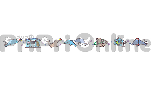 水族館のイルカやアザラシの飾り罫