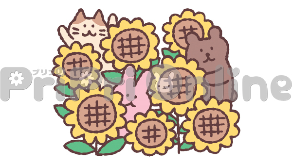 ヒマワリと動物たちのイラスト