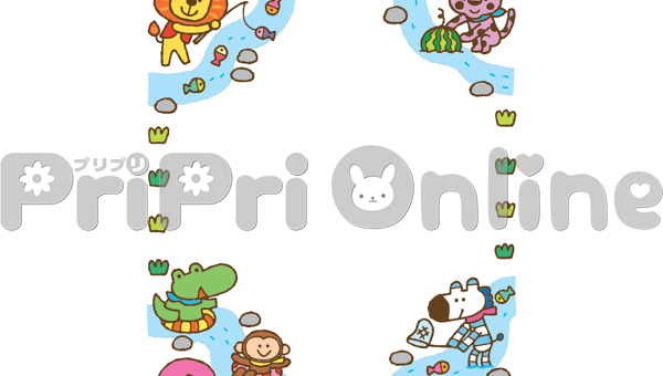 川で遊ぶ動物たちの飾り枠
