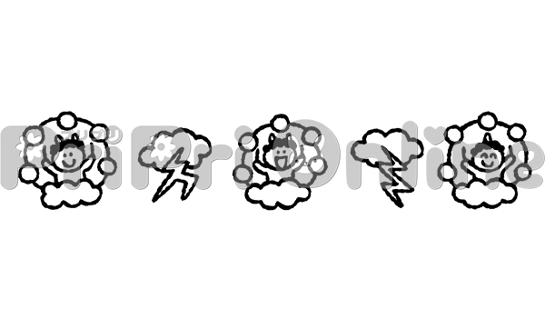 雷さまの飾り罫(白黒)