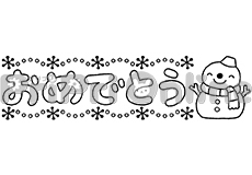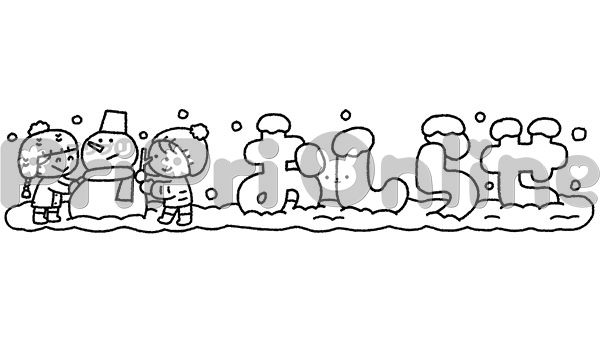 雪だるまと子どもたちと「おしらせ」の飾り文字(白黒)