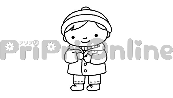 上着のボタンをと子どものイラスト(白黒)