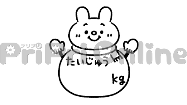 うさぎの雪だるまと「たいじゅう」の飾り文字(白黒)