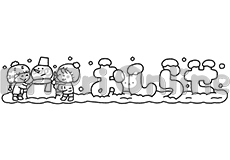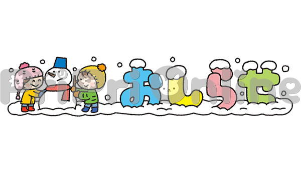 雪だるまと子どもたちと「おしらせ」の飾り文字