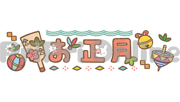 羽子板やコマや鞠と「お正月」の飾り文字
