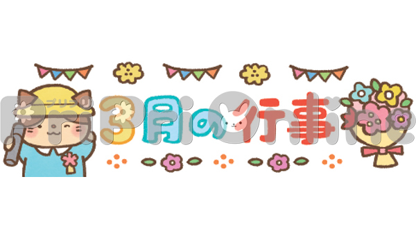 卒園する猫の子どもと「3月の行事」の飾り文字