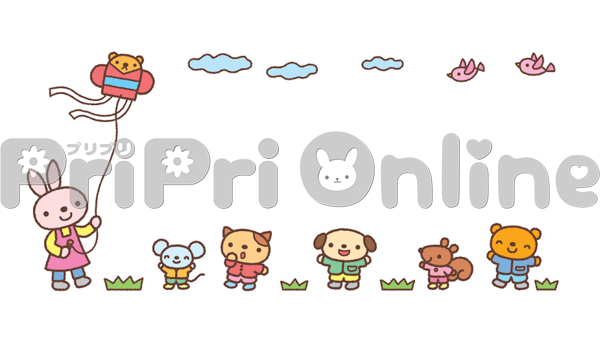 たこあげをする動物の子どもと保育者の飾り枠