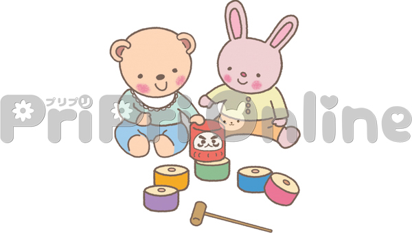だるま落としをする動物の乳児のイラスト