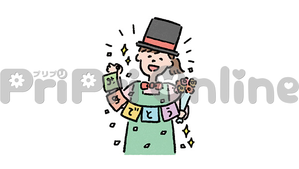 マジックでお祝いする保育者のイラスト