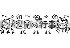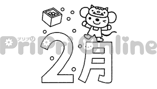 節分のねずみと「2月」の飾り文字(白黒)