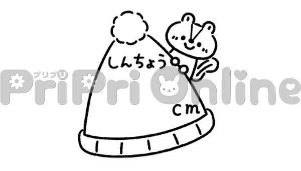 リスとニット帽と「しんちょう」の飾り文字(白黒)