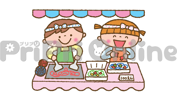 屋台ごっこをする子どもたちのイラスト