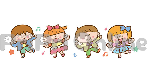 発表会で踊りを発表する子どもたちのイラスト