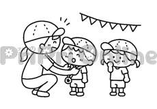 旗を振るリスと「ガンバレ!」の飾り文字(白黒)