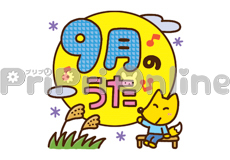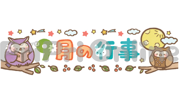 読書するふくろうと「9月の行事」の飾り文字