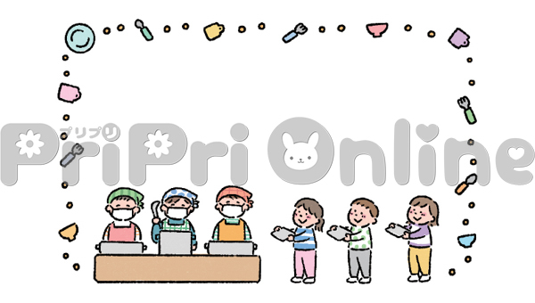 給食の時間の子どもたちの飾り枠