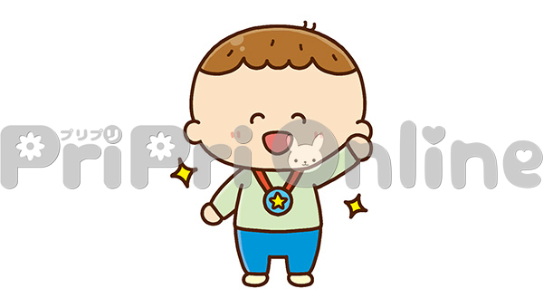 メダルをつけた乳児のイラスト