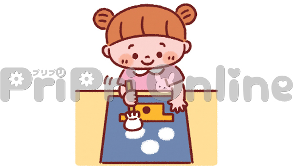 お月見団子をスタンプ制作する女の子のイラスト