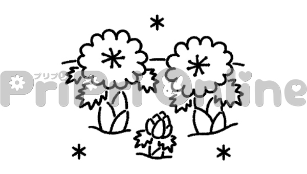 雪の中から顔を出す福寿草のイラスト(白黒)