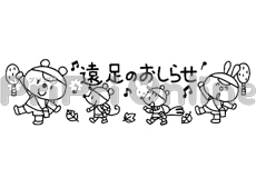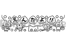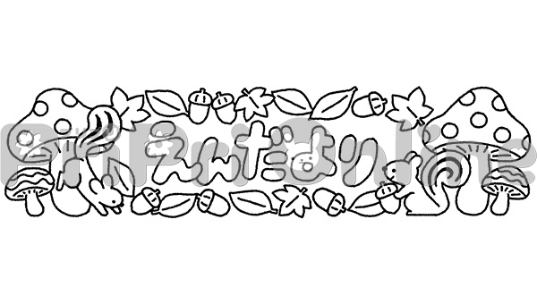 どんぐり、りすなどと「えんだより」の飾り文字(白黒)