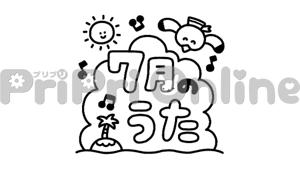 海と「7月のうた」の飾り文字(白黒)